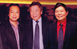 時任河南省人民政府省長郭庚茂先生(左)與臺州商會支部書記、《百花散》傳人梅安富先生合影